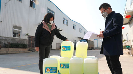 2020年1月31日下午,在長沙經(jīng)開區(qū)麗奧科技產業(yè)園門口,湖南麗臣實業(yè)股份有限公司副總經(jīng)理張穎民正在分發(fā)84消毒液。彼時...